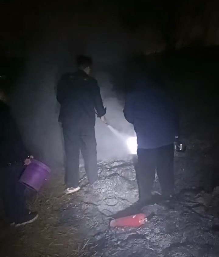 馬昌樂立即上報情況,分隊長高春勇迅速帶領(lǐng)隊員蔣俊子、吳守龍、孫雙其、高永軍、代航龍、周鎖寶、李超攜帶應急器材趕往現(xiàn)場。面對可能蔓延的火勢和隨風飄散的火星,隊員們沉著應對,運用日常消防訓練技能,僅用十余分鐘便將明火撲滅,有效防止了火勢擴大和再次起火的風險。